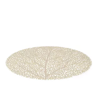 Cechy charakterystyczne Podkładka do jadalni RAGII to złoty produkt, o okrągłym kształcie. Produkt o średnicy 38cm. Zdecydowanie elegancka propozycja, która delikatnie przypomina gałęzie drzewa. Ażurkowa podkładka w kolorze złota, to stylowa i szykowna ozdoba, która podkreśli różnego rodzaju meble - stoły czy stoliki kawowe, w różnych kolorach drewna i nie tylko. Twój dom może zyskać nowego charakteru! MateriałProdukt został wykonany w 100% z polipropylenu.