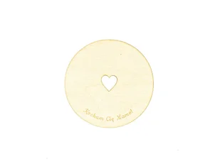 Drewniana podkładka pod kubek z napisem "Kocham Cię Mamo!", idealny dodatek do prezentu na Dzień Matki. Materiał: sklejka 4 mm. Kolor: naturalny. Średnica: 10 cm. Dekoracja cięta laserem, przez co przez pierwsze godziny może pachnieć typowym zapachem ciętego drewna. Przy krawędziach mogą także pozostać drobne cienie od cięcia laserowego oraz zeschniętej żywicy.
