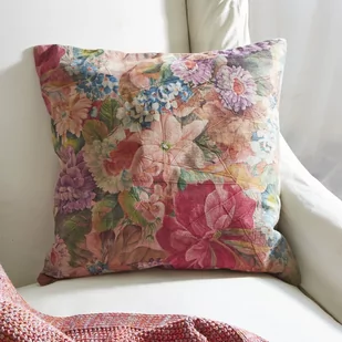 Prawdziwy klejnot! Kozia skóra z Indii, przetwarzana w sposób zrównoważony, została wykończona bogatym włoskim nadrukiem. Zasada „mieszaj i łącz” w międzynarodowym stylu. Ze skrawków skóry powstało coś nowego – w szlachetnym patchworkowym stylu. Dzieki temu każdy egzemplarz ma unikalny wygląd. Indywidualny charakter nadają każdej poduszce szwy, które są jednak prawie niewyczuwalne – z taką precyzją zostały wykonane! Bogaty włoski nadruk przywodzi na myśl bujny, pachnący letni ogród.