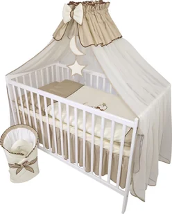 10. Wstążka. 11. Replika acyjny księżyc i gwiazda. 12. Rożek dziecięcy 75 x 75 cm. 13. Falbana do łóżka. Inne cechy produktu, które chcielibyśmy szczególnie podkreślić to: Dbałość o szczegóły: