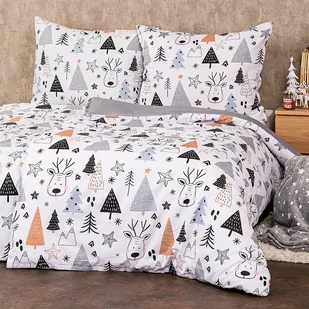 Wprowadź się w nastrój zimowej idylli z tą uroczą bawełnianą pościelą. Wesoły motyw łosi i choinek oczaruje z pewnością wszystkich miłośników figlarnych wzorów. Delikatne białe tło uzupełnione delikatnymi tonami pastelowych kolorów w stylu skandynawskim pasuje do każdej sypialni i wyczaruje idealną zimową atmosferę w Twoim domu. Przyjemna 100% bawełna zapewni wygodny i niczym niezmącony sen. Pościel jest dwustronna - jedna strona ze wzorem, druga strona jednokolorowa.
