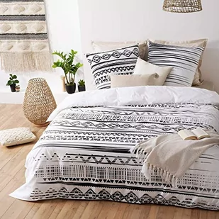 Elegancki komplet pościeli, który będzie prezentował się niezwykle szykownie w Twojej sypialni. Wykonany został z odpornego bawełnianego materiału, który dodatkowo jest bardzo miękki i delikatny. Dzięki temu pościel zapewni Ci komfortowy i wygodny sen. Pomijając walory praktyczne pościel ze względu na oryginalne zdobienie będzie też piękną dekoracją. Etniczny wzór prezentuje się bardzo ekskluzywnie, dzięki czemu pościel wpasuje się niemal w każdy rodzaj aranżacji.