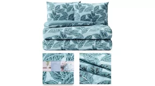AmeliaHome 3-częściowy komplet pościeli 200 x 200 cm z 2 poszewkami na poduszki 80 x 80 cm, 100% bawełna, zamek błyskawiczny, wzór liści, Averi Antigua