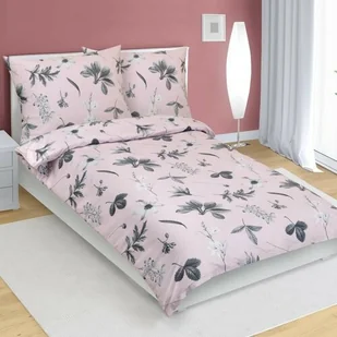 Bellatex Pościel bawełniana Łąka szary, różowy, 140 x 200 cm, 70 x 90 cm, 140 x 200 cm, 70 x 90 cm