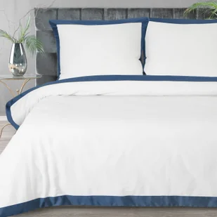 Biała pościel 220x200 satynowa Laura z granatową kantą Eurofirany