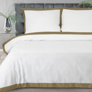 Biała pościel 220x200 satynowa Laura z złotą kantą Eurofirany