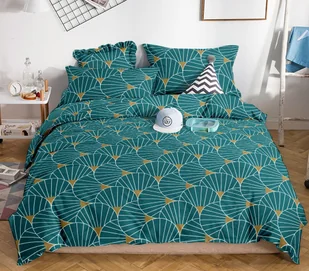 Pościel z satyny bawełnianej, 220x200, zielona geometryczna, PBS-763, 3-częściowa