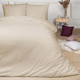 Gładka powierzchnia jednobarwnej pościeli z satynowym splotem układającym się w pasy , przypomina w dotyku jedwabną tkaninę z połyskiem, która pięknie odbija sztuczne światło. Pościel ma wszyty praktyczny zamek błyskawiczny zakryty pliską, umożliwiający szybką zmianę. Pościel idealnie nadaje się na prezent.
