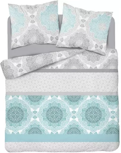 Pościel flanelowa, bawełniana, szaro-błękitna, boho, 200x220 cm, 3-elementowa