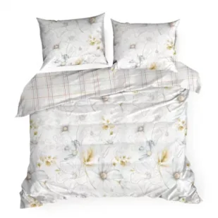 Eurofirany Pościel z mikrofibry 220x200 Lea 09 kwiaty liście biały beżowy D91