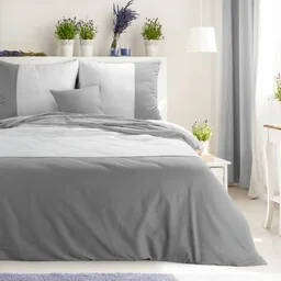 Eurofirany Pościel bawełniana 160x200 Nova D biała stalowa dwukolorowa z ozdobną lamówką