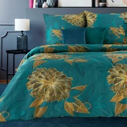 Pościel satynowa 160x200 Molly turkusowa złota kwiaty w pudełku Eurofirany została wykonana z najwyższej jakości satyny bawełnianej, którą wyróżnia delikatna miękkość, jedwabisty połysk, niezwykła trwałość i łatwość prasowania. Nowoczesna i trwała technologia barwienia sprawia, że pościel nie traci swojej intensywności i koloru nawet po wielu praniach. System trwałych zamków błyskawicznych sprawia, że zmiana pościeli trwa tylko krótką chwilę. Najwyższa jakość naturalnych tkanin, nietuzinkowe, odważne desenie i motywy zgodne z najnowszymi, światowymi trendami. Idealny pomysł na prezent na różne okazje.