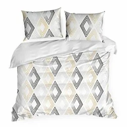 Eurofirany Pościel satynowa 220x200 Spring 35 biała żółta czarna geometria NEW24
