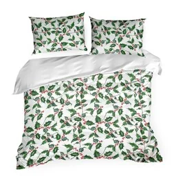 Eurofirany Pościel świąteczna 160x200 Tori biała zielona liście z mikrowłókna Św 24