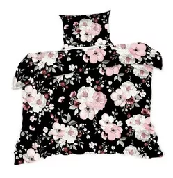 Extrapościel Pościel bawełniana 140x200 kwiaty czarna różowa 1476N Classic