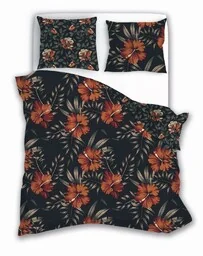 Faro Pościel satynowa 220x200 Elegant 028 czarna pomarańczowa kwiaty dwustronna S 23