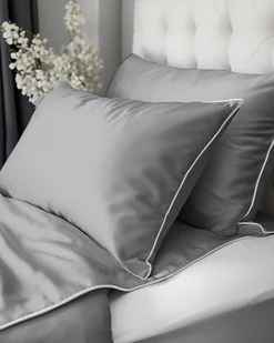 Jasnoszara Pościel Z Makosatyny Z Ozdobną Lamówką 140x200 BIZA