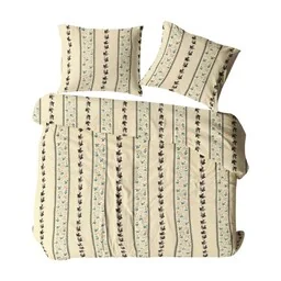 Karo Pościel flanelowa 160x200 1601N kremowa wielokolorowa liście paski Flanela Komfort zapinana na guziki