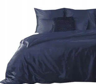 Komplet pościeli 140x200 satyna bawełniana gładka miękka granatowa