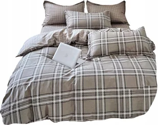 KOMPLET POŚCIELI 160X200 POŚCIEL BAWEŁNA SATYNOWA 2x POSZEWKI 70X80 KRATA