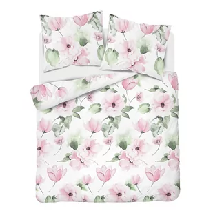 Komplet pościeli bawełna o satynowym splocie, 220x200, biała w kwiaty 4451A