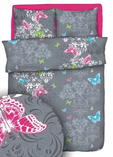 Komplet Pościeli Bawełnianej 160x200 2x70x80 Motyl Na Szarym Polski Producent 100% Bawełna