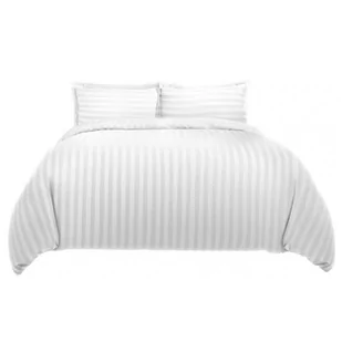 Komplet pościeli hotelowej ze 100% bawełnianej tkaniny, wykonany specjalną techniką splotów przędzy. Charakteryzuje się dużą odpornością na działanie czynników mechanicznych - można prać ją w wysokiej temperaturze. Pościel posiada żakardowy wzór pasów, delikatny połysk, przyjemny chwyt, jest przewiewna i miła dla ciała. Prosty a zarazem efektowny wygląd poszewki sprawia, że swoje zastosowanie znajdzie we wnętrzach urządzonych zarówno w stylu klasycznym jak i nowoczesnym. Komplet pościeli idealnie nadaje się do hoteli, ale również użyty w domowym zaciszu doda nutę elegancji do aranżacji wnętrza.