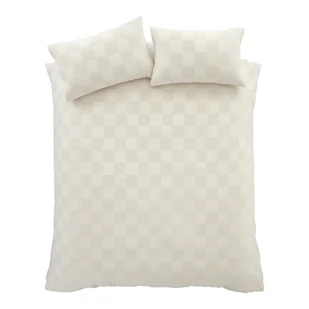 Catherine Lansfield Przytulny zestaw poszewek na kołdrę w szachownicę Boucle z poszewkami na poduszki kremowy