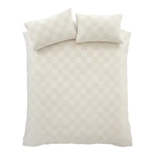 Catherine Lansfield Przytulny zestaw poszewek na kołdrę z poszewkami na poduszki w szachownicę Boucle King, kremowy