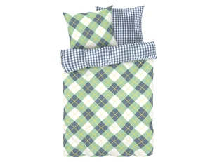 LIVARNO home Dwustronna pościel satynowa, 220 x 200 cm (Kratka/ zielony/ biały)