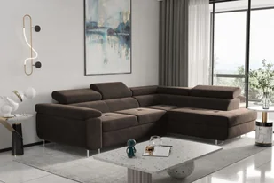 Piankowe zagłówki regulowane w 6 pozycjach, które dopasowują się do kształtu głowy. Noga metalowa w kolorze srebrnym o wysokości 9 cm. Narożnik LEWY/PRAWY (wiele wariantów kolorystycznych). Wymiary: Szerokość: 200 cmDługość: 275 cmWysokość: