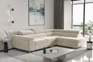 Piankowe zagłówki regulowane w 6 pozycjach, które dopasowują się do kształtu głowy. Noga metalowa w kolorze srebrnym o wysokości 9 cm. Narożnik LEWY/PRAWY (wiele wariantów kolorystycznych). Wymiary: Szerokość: 200 cmDługość: 275 cmWysokość: