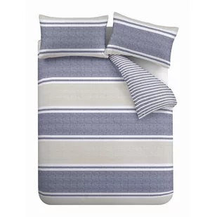 Catherine Lansfield Dwustronny zestaw poszewek na kołdrę z teksturowanymi paskami i poszewkami na poduszki niebieski