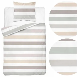 Komplet pościeli bawełnianej o satynowym splocie z poszwą na kołdrę 140 x 200 cm i poszewką na poduszkę w kolorze beżowym w paski to modny dodatek do sypialni. Miękka i przyjemna tkanina zachowuje swój rozmiar nawet po wielu praniach. Poszewki zapinane są na wygodny zamek błyskawiczny.