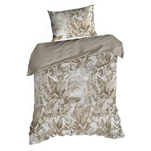 Eurofirany Pościel satynowa 140x200 Spring 46 beżowa brązowa liście