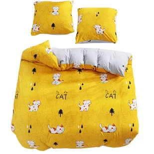 Pościel 140x200 bawełna satynowa dwustronna GierekHoff 2 el żółta koty