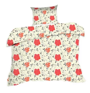 Pościel 140X200 Kwiaty Kremowa Czerwona Classic