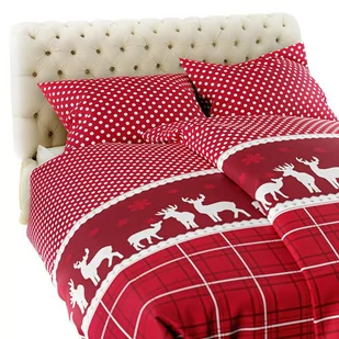 Pościel Flanelowa 160x200 cm Xmass 1A Świąteczna Czerwona Renifery Spod Igły i Nitki