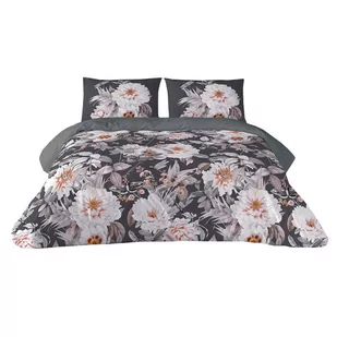 Pościel satynowa 160x200 kwiaty grafitowa różowa Prestige 1