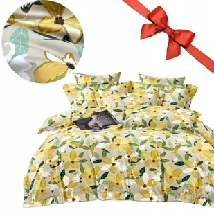 Pościel 160x200 bawełna satynowa dwustronna gruba 3 el 4285 kwiaty żółte