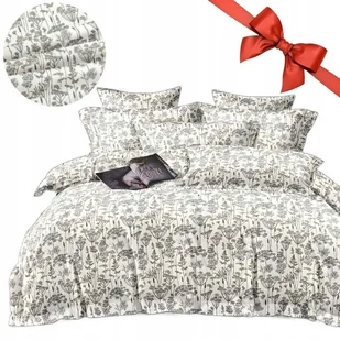 Pościel 160x200 bawełna satynowa dwustronna gruba 3 el 4289 kwiaty czarne
