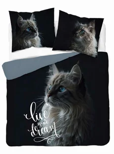 Detexpol Pościel bawełniana 220x200 czarna szara kot Live your Dream 5296 A Holland Natura 52