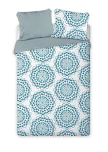 Pościel bawełniana z dwustronnym wzornictwem zachowana z jednej strony w neutralnym kolorze jednolitej szarości, zaś z drugiej pokryta niebieskim wzorem boho. Wymiary pościeli sięgają 220 cm szerokości i 200 cm długości. W komplecie znajdują się dwie poduszki o prostokątnym kształcie i standardowym wymiarze 70x80 cm. Produkt z miękkiej i przyjemnej w dotyku, odpornej na gniecenie bawełny, która zachowuje doskonałą kondycję także po wielokrotnym praniu w pralce. W sklepie komfort znajdziesz takż