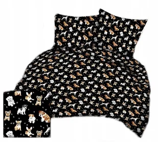 pościel bawełna lux 140x200 + 1 poszewka B 307-3 psiaki na czarnym