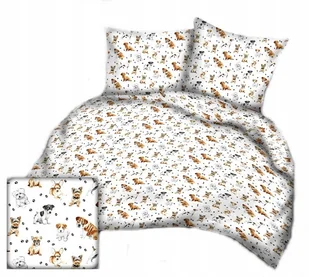 pościel bawełna lux 200x200 + 2 poszewka B 307-2 psiaki na białym