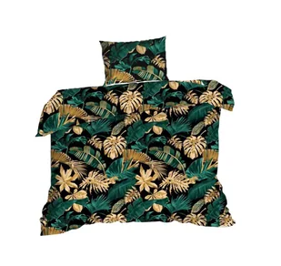 Pościel bawełniana 140x200 liście czarna zielona złota 1497N Classic