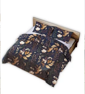 Pościel bawełniana 160x200 granatowa roślinna oaza