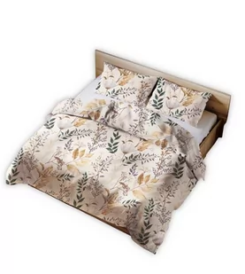 Pościel bawełniana 160x200 jasnobeżowa roślinna oaza