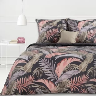 Pościel Bawełniana 160X200 Sara 06 Czarna Kolorowa Pastelowa Liście Eurofirany