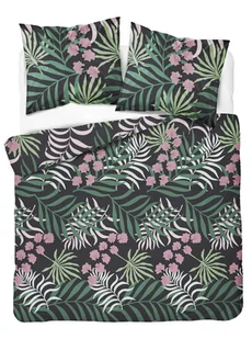 Pościel bawełniana 200x220 Detexpol czarna różowa zielona gałązki